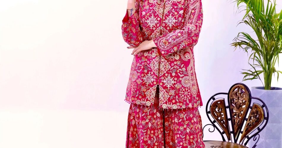 There is something undeniably alluring about women who wear their culture with immense pride. The Pink Embroidered Co-Ord Set from Gulbhahar is made specifically for those kinds of women. With its design infused with elements of the South Asian textile tradition, it combines elegance with a distinctly ethnic charm.